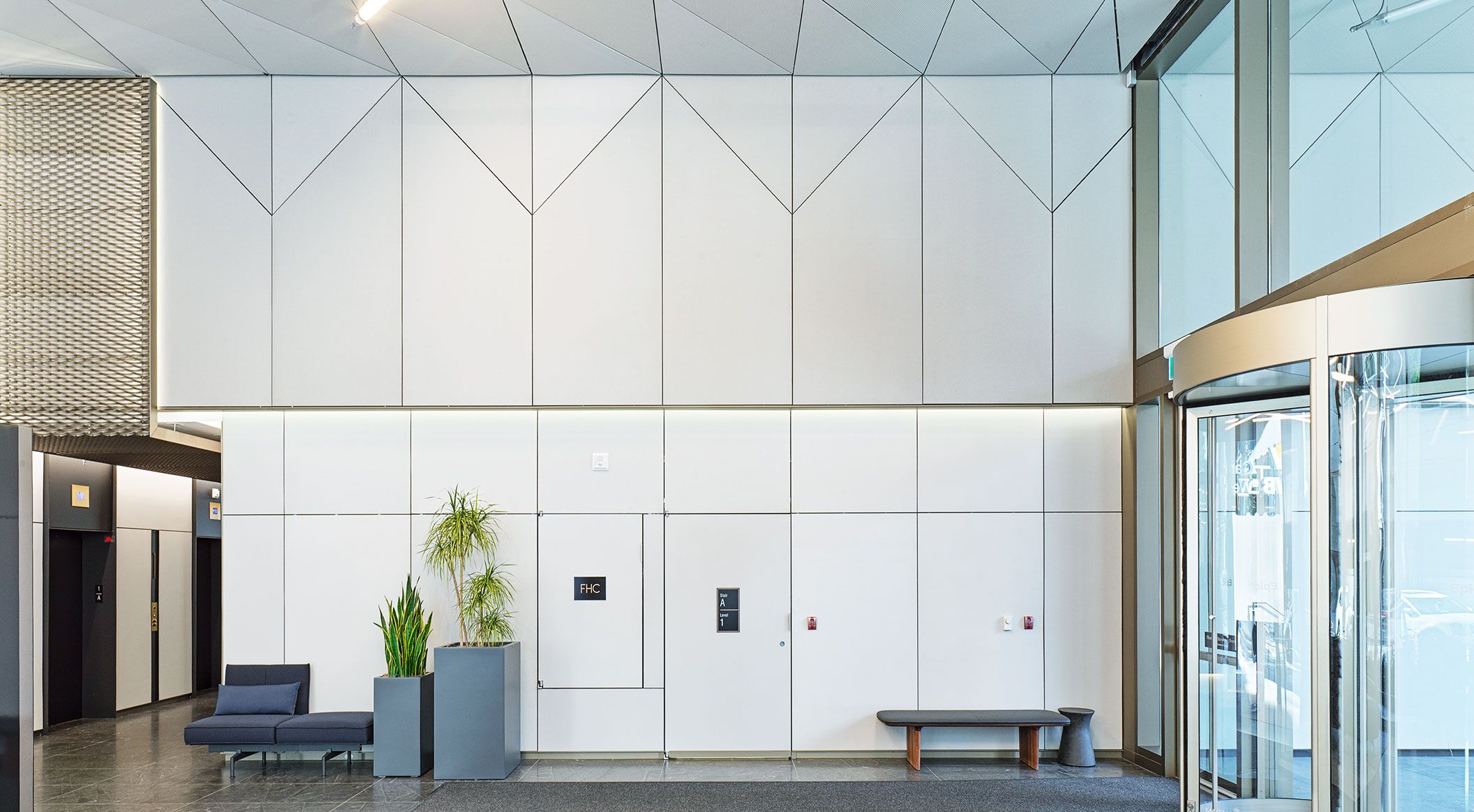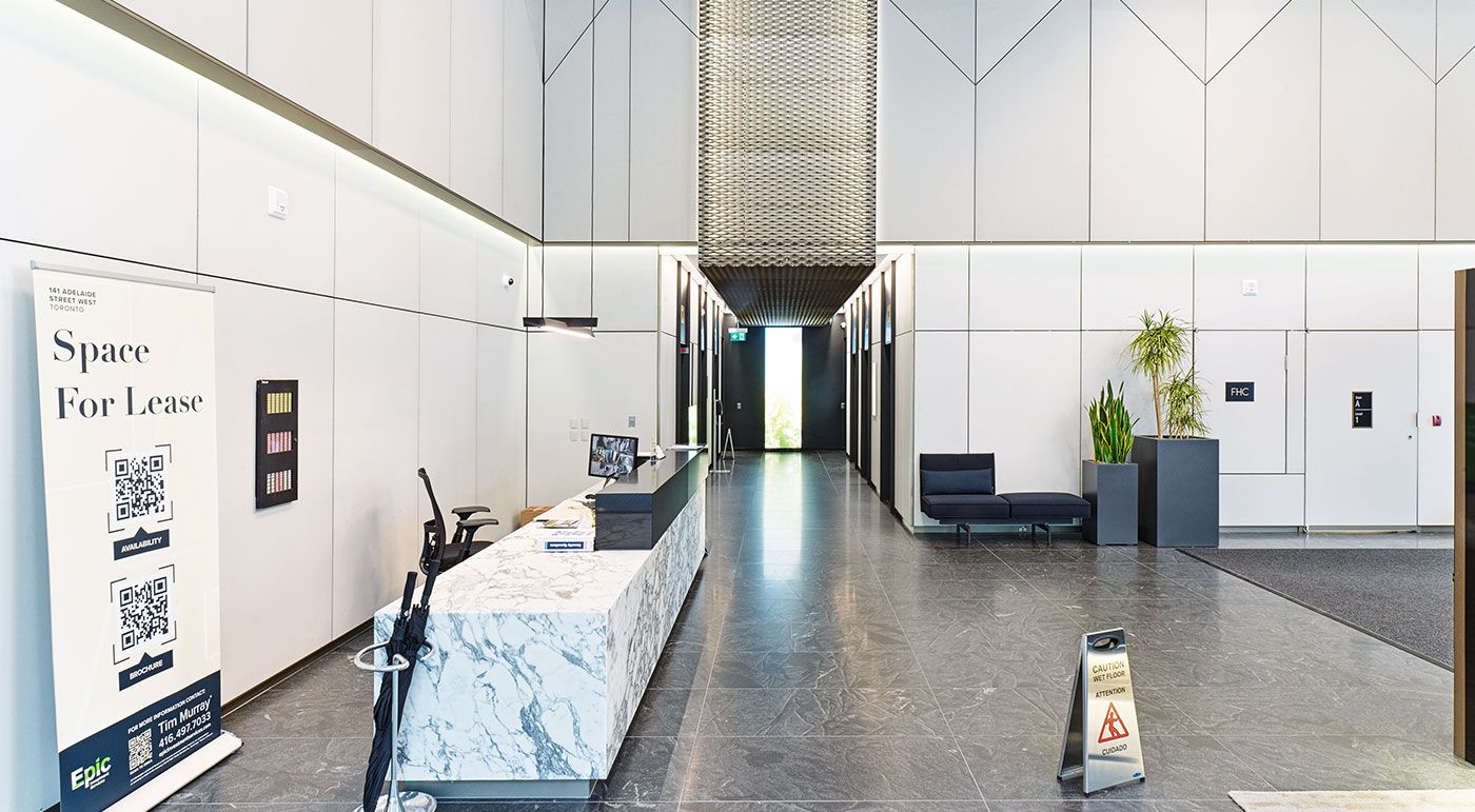 At 141 Adelaide Street West in Toronto, a prime location in the city's financial district, new office and retail spaces are being developed. Both the interior and exterior feature our concrete skin panels in groove and standard finishes. The triangular shape of the glassfbire reinforced concrete elements creates sophisticated highlights within the interior. Photos: Ditz Fejer