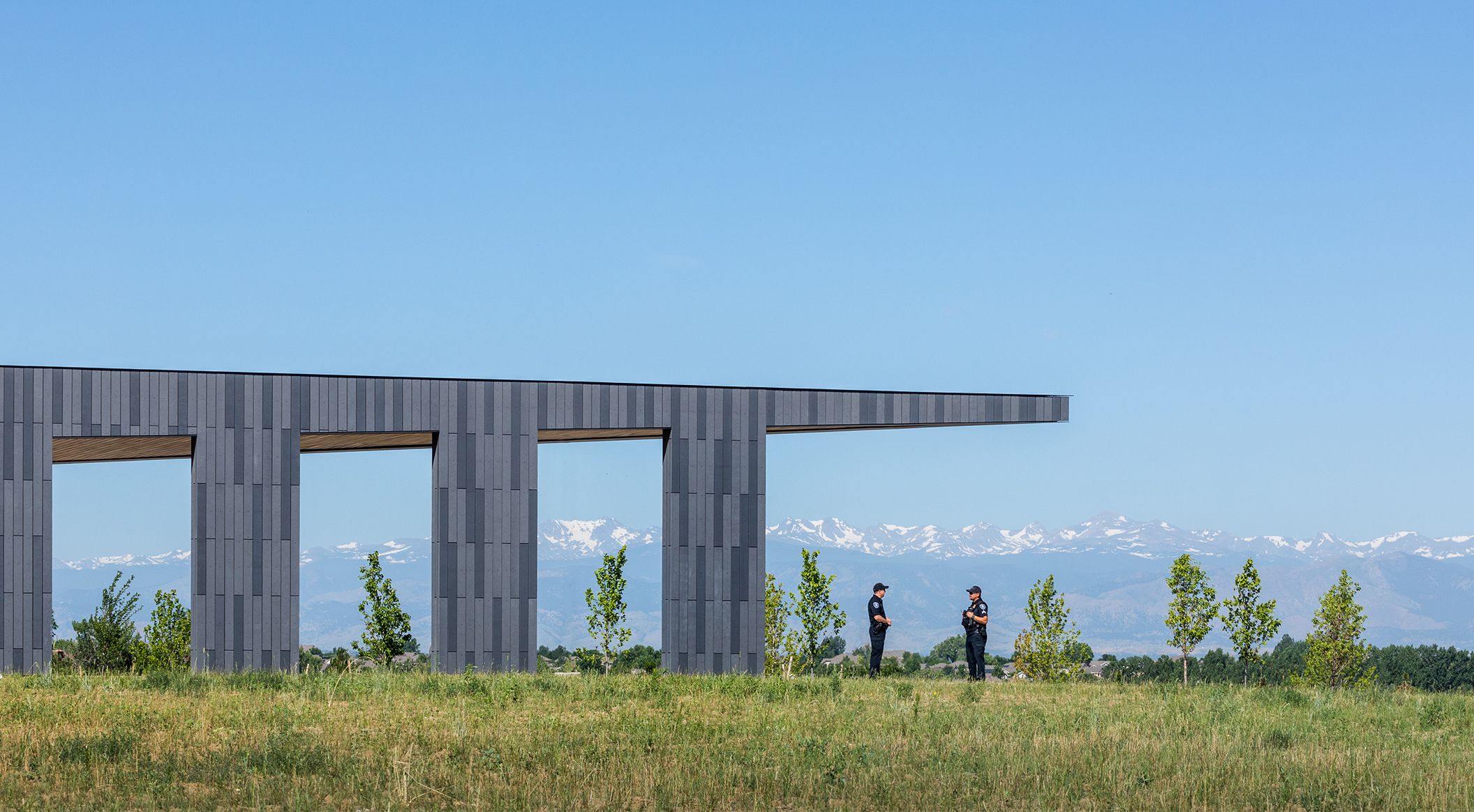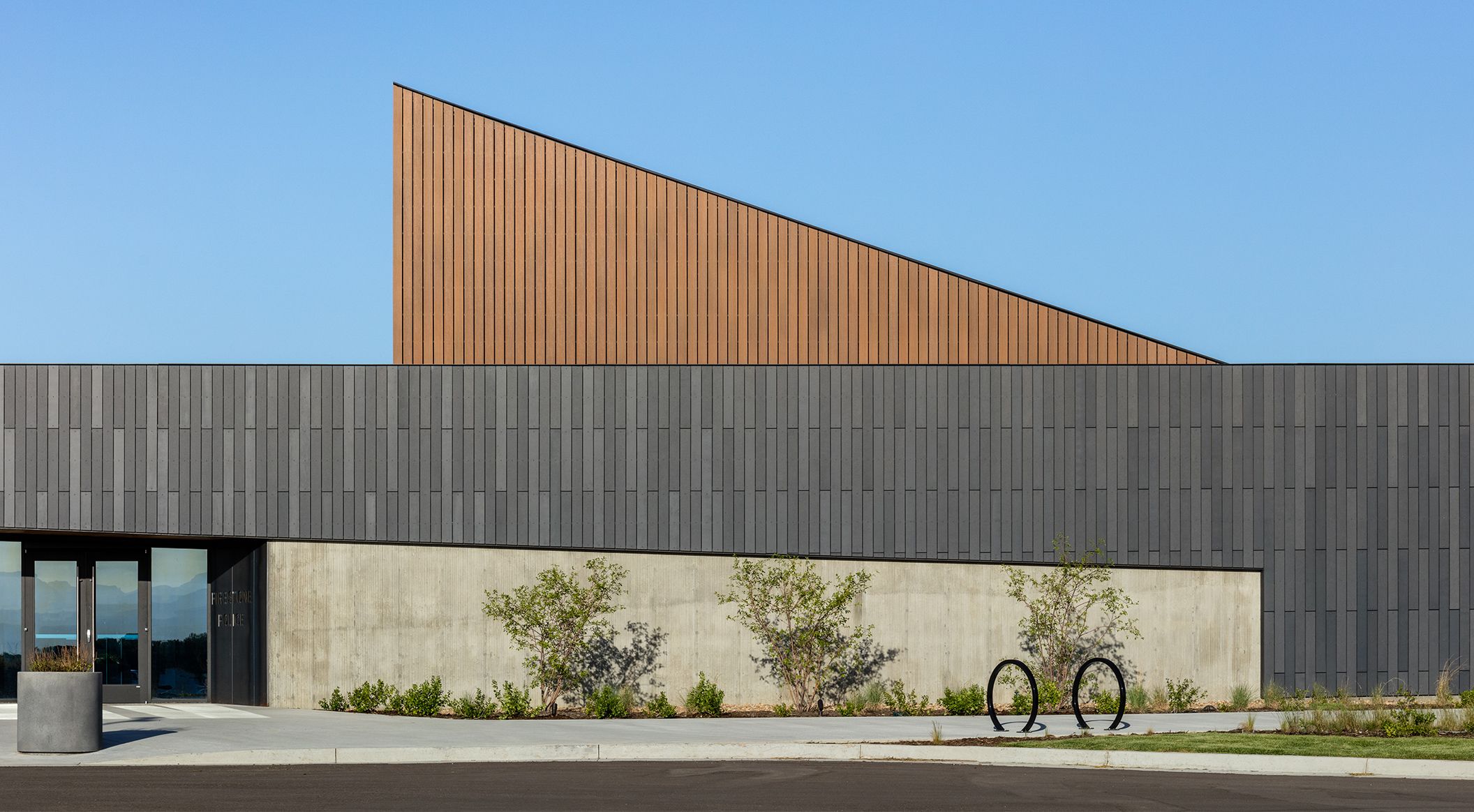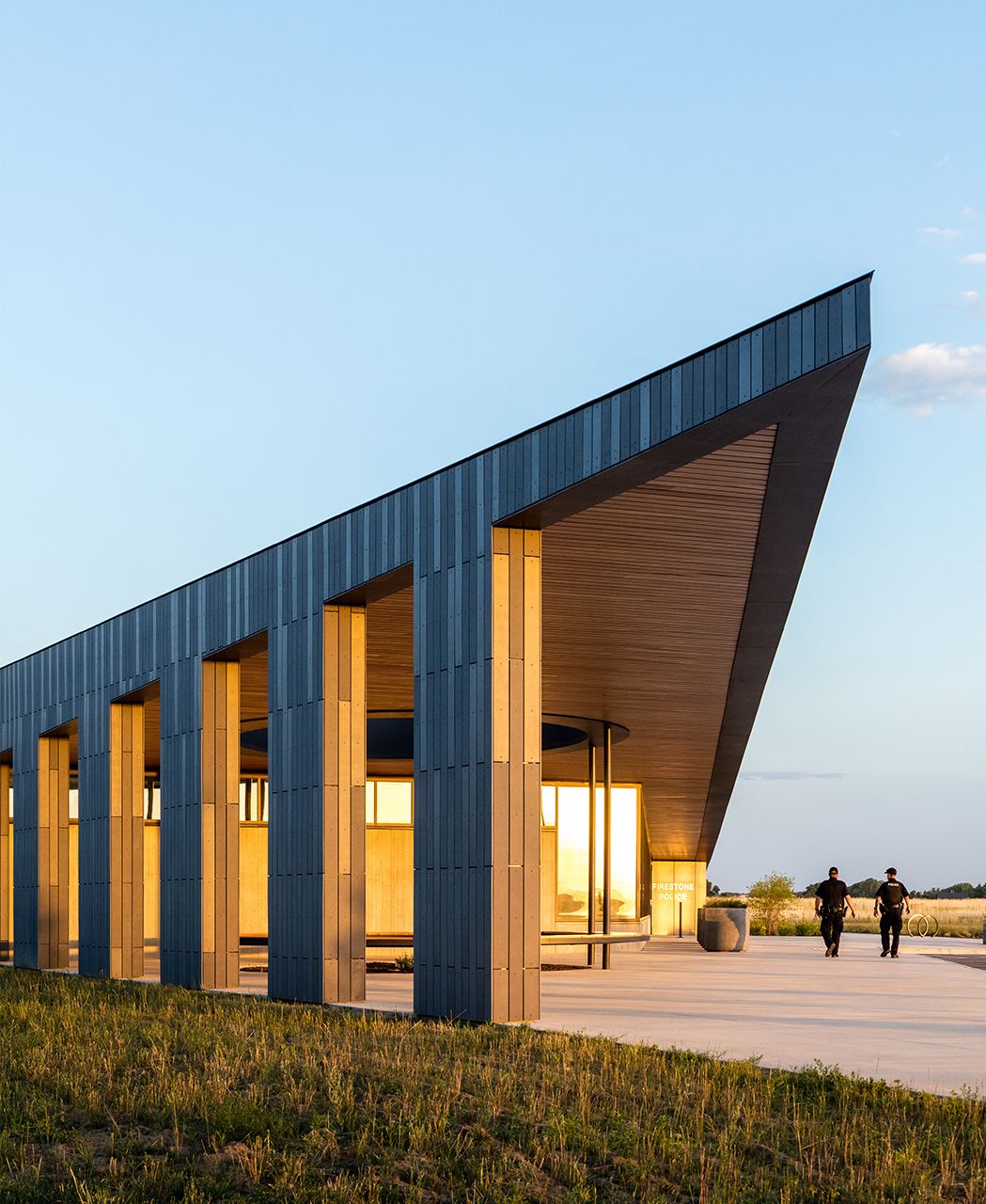 The new Firestone Police Department & Municipal Court building combines different departments into one complex. Roth Sheppard architects worked closely with the relevant parties to consider all needs and potential developments. The award-winning building features an intriguing architectural concept. The cantilevered roof extends over the site, defining the courtyard. The slim columns add stylish accents. A captivating interplay between transparency and cladding emerges. The unique design language invites the community to enter. The öko skin facade with different surfaces gives the exterior a lively appearance. Photos: James Florio.